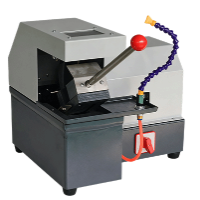 Bij het voorbereidingsproces van metallografische monsters is het snijden van materiaal de eerste stap. Om veilig ideale exemplaren te verkrijgen, maakt de snijmachine gebruik van een snelle, met dunne schijven versterkte slijpschijf.